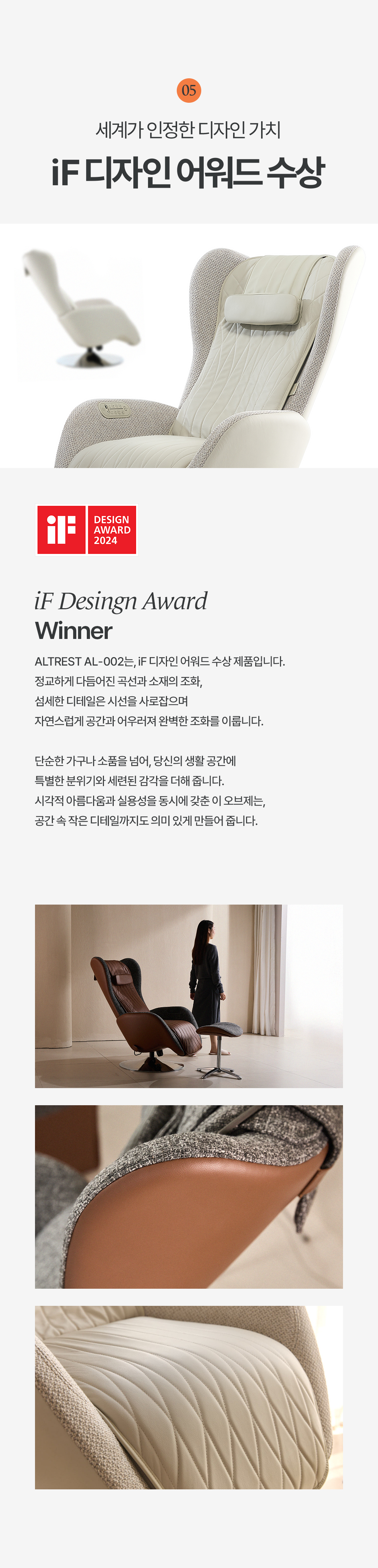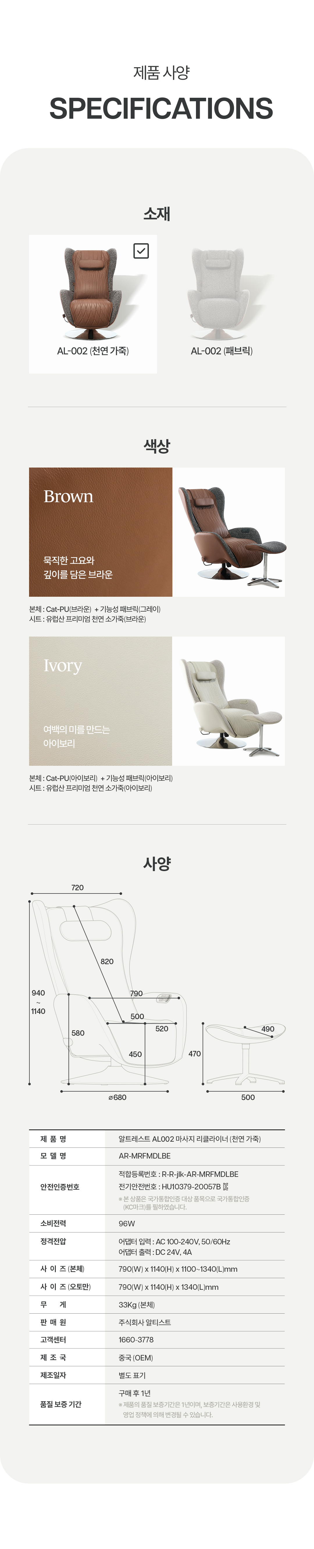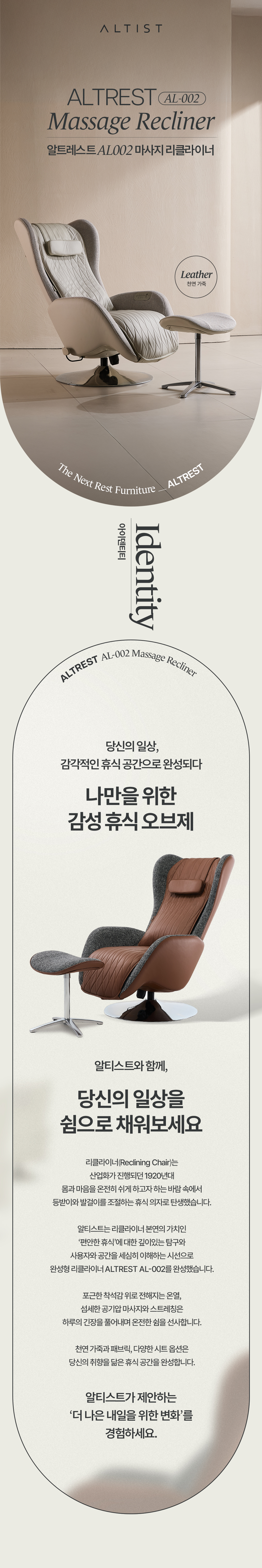 • 알트레스트 AL002 마사지 리클라이너 아이보리 천연 소가죽 안마의자