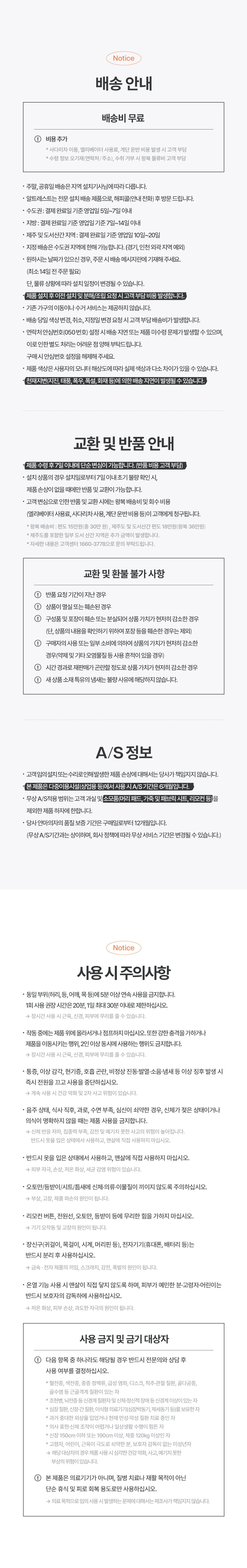 -본 제품은 의료기기가 아니며, 질병 치료나 재활 목적이 아닌 단순 휴식 및 피로 회복 용으로만 사용하십시오.